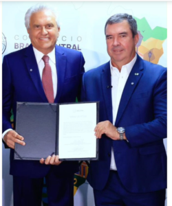 NOVO COMANDO NA PRESIDÊNCIA DA BrC – Na quarta-feira, dia 21 de janeiro, após dois anos na liderança do Consórcio Brasil Central (BrC), o governador Ronaldo Caiado oficializou em Brasília, a transferência da presidência do grupo ao governador do Mato Grosso do Sul, Eduardo Riedel