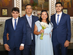 BODAS DE PRATA – Os advogados Edilaine Oliveira Amparo e Rafael Amparo de Oliveira (centro) e os filhos Alexandre e Diego, na celebração de 25 anos de união (Bodas de Prata), ocorrida no dia 20 de dezembro, em uma cerimônia religiosa, na Igreja São Nicolau, seguida de recepção na Reserva 35 Adega. O momento especial foi compartilhado com familiares e amigos que testemunharam a felicidade do casal, em uma noite de celebração do amor construído ao longo dos anos