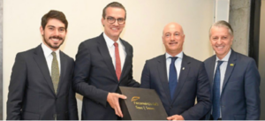 RECEBENDO DELEGAÇÃO PORTUGUESA – Na segunda-feira (16), A Fecomércio (GO)recebeu uma delegação da cidade portuguesa de Aveiro, para uma visita de fortalecimento e cooperação internacional. Na foto, o coordenador da Câmara de Comércio Exterior da Fecomércio-GO (Fecomex), Marcelo Gomes; o vice-presidente da Fecomércio Goiás e presidente do SindiPosto-GO, Márcio Andrade; o presidente da Câmara Municipal de Aveiro, Luís Souto Miranda e o secretário de Indústria, Comércio e Serviços de Goiás, Joel Sant’Anna