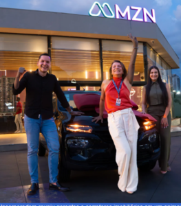 RECONHECIMENTO – Na quinta-feira, 06 de março, a MZN Incorporadora reuniu gerentes e corretores imobiliários em um animado happy hour na Central de Vendas do Paradizzo, em agradecimento ao empenho nas vendas do empreendimento. A noite foi marcada por clima festivo, regada com comida de boteco, e sorteios de prêmios que somaram R$ 30 mil, incluindo um Renault Kwid zero quilômetro, conquistado pela corretora Fabiana Duarte, da R8 Imóveis. Na foto, Hélio Machado, gerente comercial da MZN, Fabiana Duarte, grande vencedora do sorteio, e Paloma Cardoso