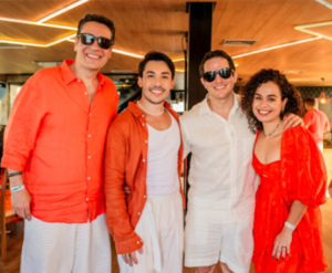 ANIVERSÁRIO EM ALTO ESTILO – No sábado, 29 de março, o cantor Hugo Vitti festejou idade nova, ao lado de familiares e amigos, a bordo do Diamond, o barco flutuante mais sofisticado do Lago Paranoá, em Brasília (DF). A festa com o tema ‘Sunset pôr do sol com Aperol’, foi uma homenagem ao drinque favorito do aniversariante. Já o dress code seguiu a paleta de cores laranja e branco, fazendo referência à bebida. Hugo fez uma apresentação especial com o seu padrinho, Gislei Alves, que também é cantor. Na foto, César Moura, secretário da Retomada de Goiás, Hugo Vitti, Leopoldo Veiga Jardim, diretor do SESC Goiás e Camila Caiado