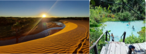 JALAPÃO – Localizado ao leste do Tocantins, na divisa com os estados do Maranhão, Piauí e Bahia, o Jalapão possui uma paisagem que harmoniza a aridez do Cerrado com uma imensa teia de rios, riachos e ribeirões de águas cristalinas. O nome Jalapão originou-se da Jalapa, uma das muitas plantas típicas usadas pelas “doutoras” da medicina natural que vivem nas comunidades quilombolas da região, como Mumbuca e Rio Novo, em Mateiros, e a comunidade Prata, no município de São Félix, onde há turismo de base comunitária e artesanato em capim dourado. Escalar as dunas para ver o pôr do Sol, mergulhar nas águas cristalinas da Cachoeira do Formiga, se surpreender com as sensações provocadas pelos fervedouros são experiências que não têm preço. A existência de dunas no Jalapão provoca surpresa e seu pôr do Sol é uma experiência inesquecível!