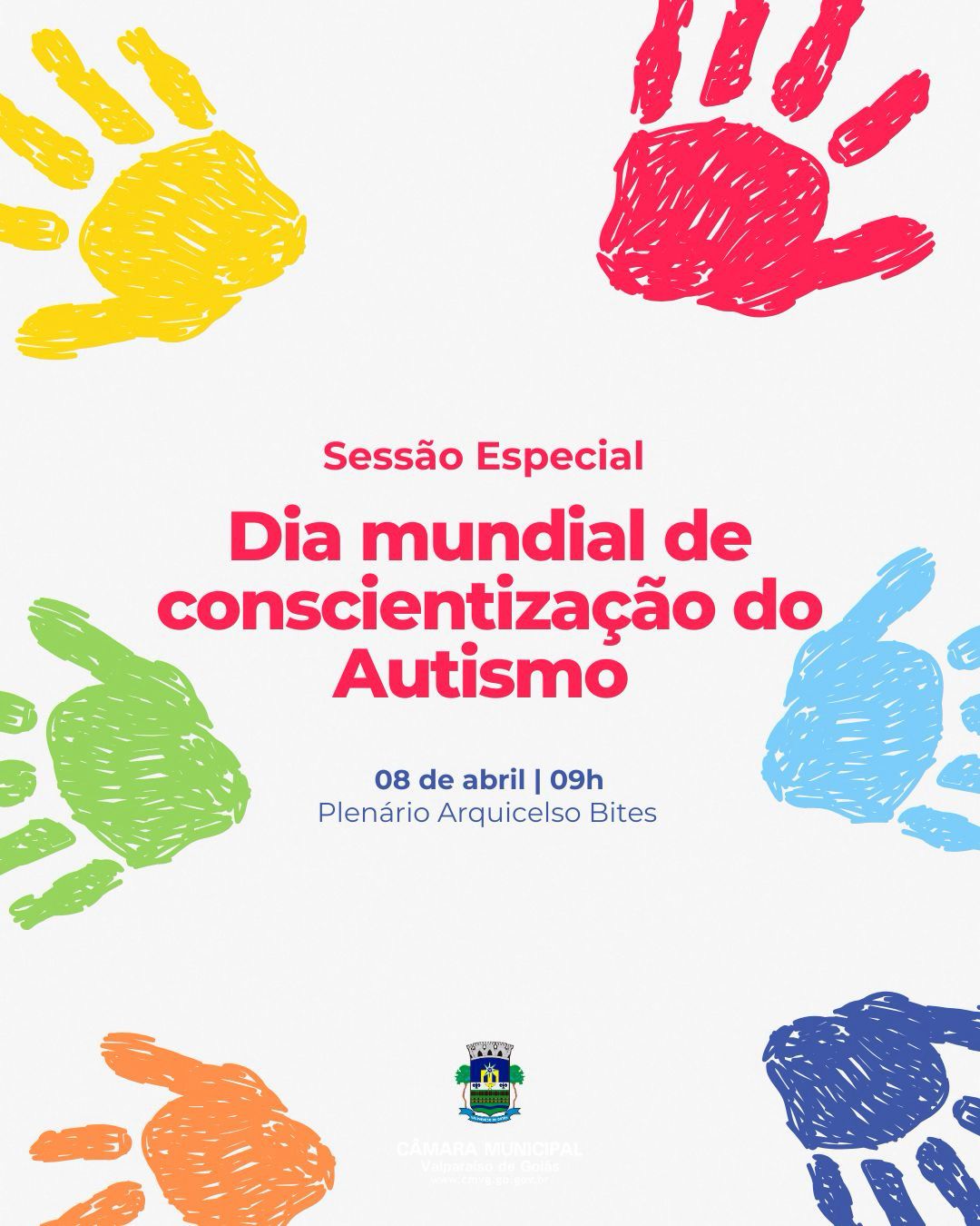 A Câmara Municipal de Valparaíso de Goiás convida toda a comunidade para participar da Sessão Especial em homenagem ao Dia Mundial de Conscientização do Autismo.