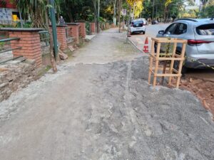 O piso, na entrada do lago norte, onde transitam crianças e idosos, está desmanchando há pelo menos meia década. A falta de noção da política ambiental que governa o bosque foi por mim fotografada nos troncos de uma árvore sacrificada. Eles foram deixados sobre o leito do Córrego dos Buritis, justamente onde ele se despede do bosque e vai desaguar no Córrego Capim Puba, contribuinte do Rio Meia Ponte. A chance dessa massa de material causar um evento negativo é real. É só consultar um engenheiro ambiental qualificado para fazer o cálculo de risco.