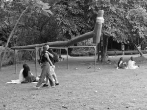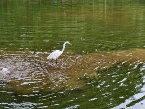 Os troncos seriam uma ótima matéria-prima, natural e de baixo custo, para substituir as barreiras de contenção das encostas do lago sul. Elas estão apodrecidas e algumas são feitas de placas de lata descartadas da publicidade oficial da prefeitura. É uma improvisação com prazo de validade vencido de fazer chorar. Quando chove muito, o solo do bosque vira lama, desce com força sobre a parte concretada do ambiente e forma uma corrente triangular de água suja na qual a garça aproveita a oportunidade para jantar.