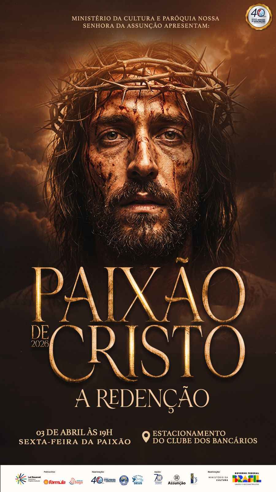 - Sexta-feira Santa (03/04) e a Grande Encenação: O dia do silêncio, do jejum e da contemplação da cruz. É neste clima de reverência que, às 19h, o estacionamento do Clube dos Bancários se transforma na antiga Jerusalém para o espetáculo “Paixão de Cristo – A Redenção”. Com o apoio do Ministério da Cultura, a megaestrutura conta com painéis de LED, efeitos especiais e mais de 350 voluntários, atraindo dezenas de milhares de pessoas para reviver os últimos passos de Cristo até o calvário.