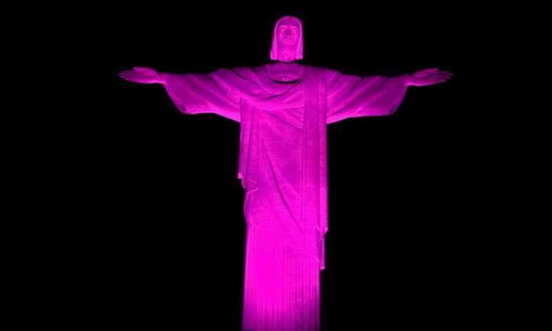Cristo Redentor é iluminado pela cor lilás enquanto projeto de lei aguarda aprovação do Congresso para instituir o Dia Nacional da Dermatite Atópica no Brasil