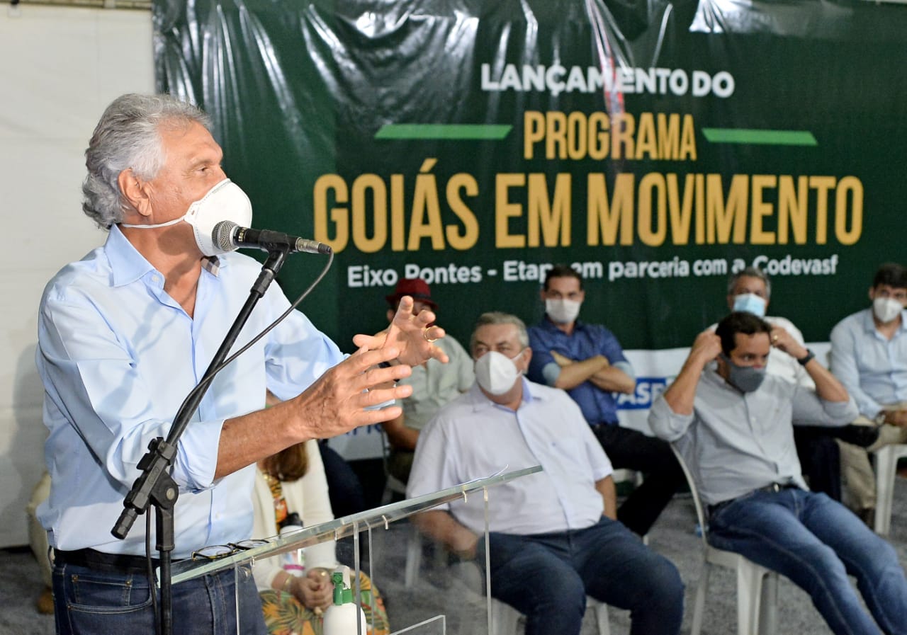 O governador Ronaldo Caiado, acompanhado do secretário do Governo, Ernesto Roller, participou do lançamento do programa “Goiás em Movimento – Eixo Pontes”, nesta segunda-feira (4), no município de Formosa. A solenidade marcou o início da construção da primeira ponte do programa sobre o Córrego Taperão, na GO-116. A cidade de Formosa será beneficiada por mais 12 pontes, todas na mesma rodovia. O investimento de R$ 22 milhões, que vai garantir a implantação de 54 pontes em 13 municípios goianos, é resultado da parceria entre o Governo de Goiás e a Codevasf, empresa pública ligada ao Ministério do Desenvolvimento Regional.