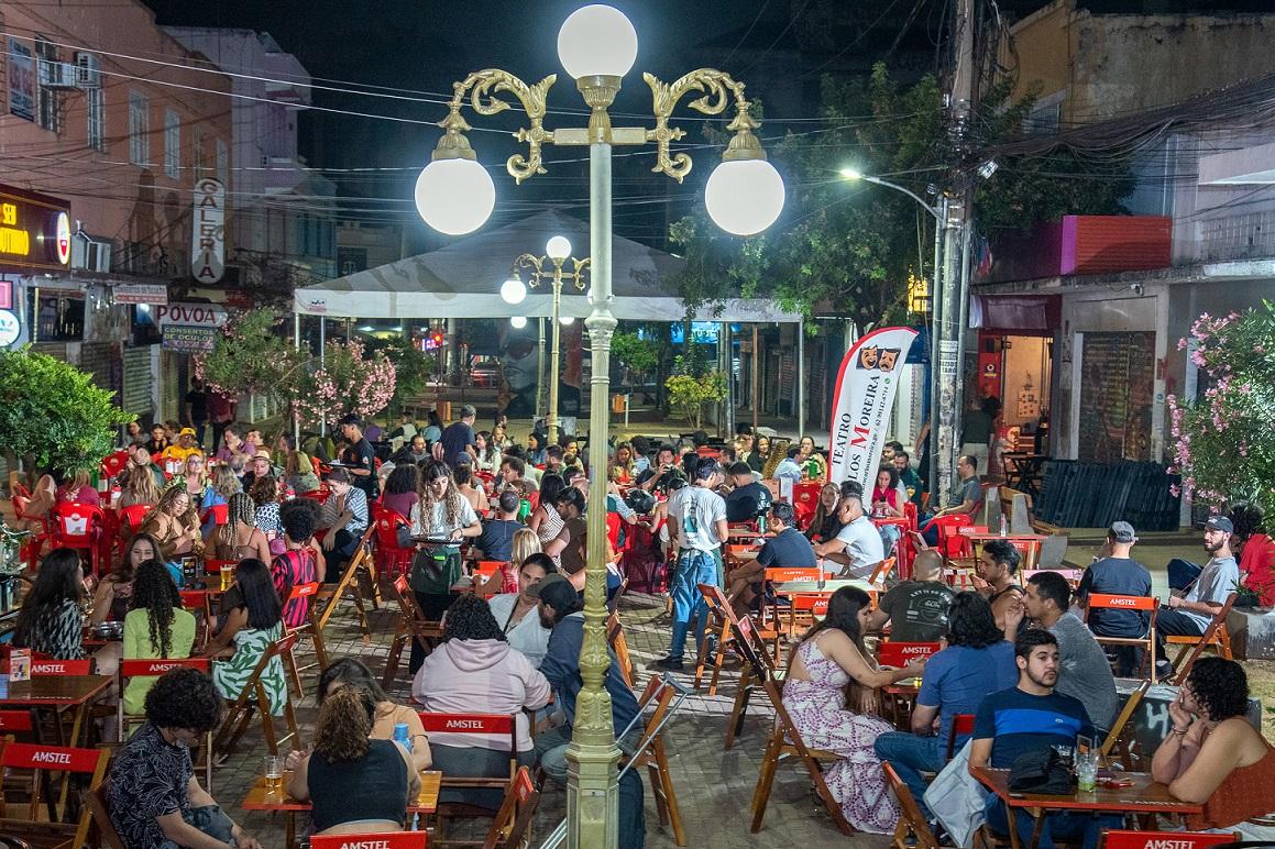 Rua do Lazer passa por renascimento cultural com novos bares e ocupação de pessoas no Centro
