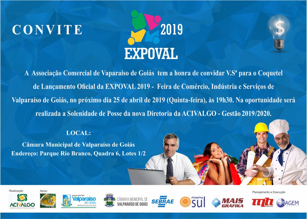 Este evento conta com a realização da Associação Comercial e Industrial de Valparaíso de Goiás – ACIVALGO, com o apoio do Sebrae-Go, FACIEG, Prefeitura Municipal de Valparaíso de Goiás, Câmara Municipal de Valparaíso de Goiás.