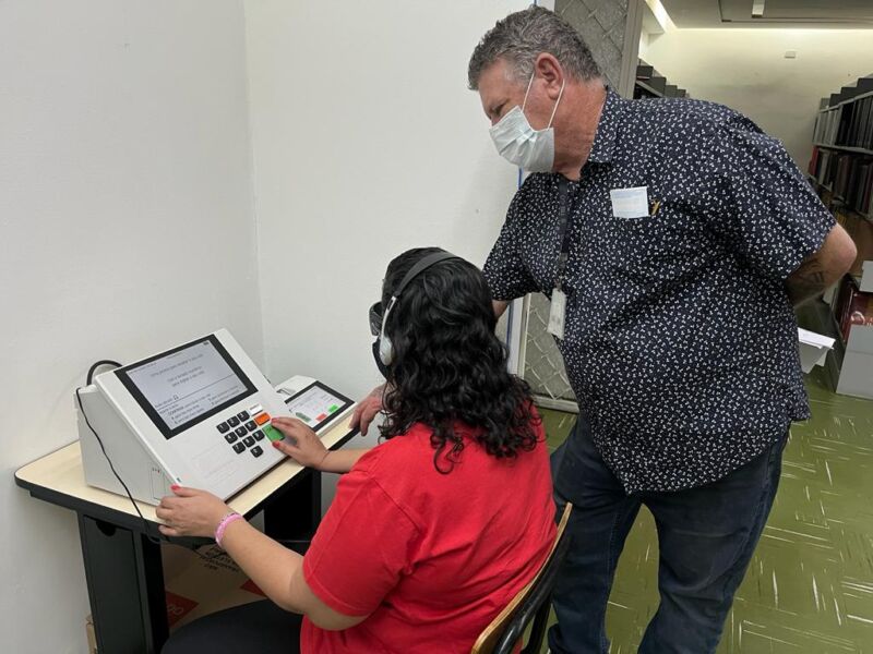 Uma urna eletrônica adaptada para pessoas com deficiência visual fica disponível a partir desta sexta-feira (02/09) na Biblioteca Braille José Álvares de Azevedo, unidade da Secretaria de Estado da Cultura (Secult), durante 15 dias, com acesso ao eleitor que deseja se preparar para o dia da votação. O equipamento é habilitado com dispositivo de som e dispõe de fones de ouvido para o manuseio. Servidores da biblioteca foram treinados pela equipe do Tribunal Regional Eleitoral (TRE), nesta quinta-feira (01/09), para auxiliar os interessados em testar a urna.
