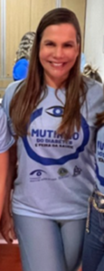 MOMENTO DE CELEBRAR – A oftalmologista diretora da Sociedade Goiana de Oftalmologia (SGO) e coordenadora do Departamento de Retina da Fundação Banco de Olhos (FUBOG), Luciana Barbosa Carneiro, celebra o sucesso do atendimento ocular realizado para pacientes diabéticos, em Goiânia,