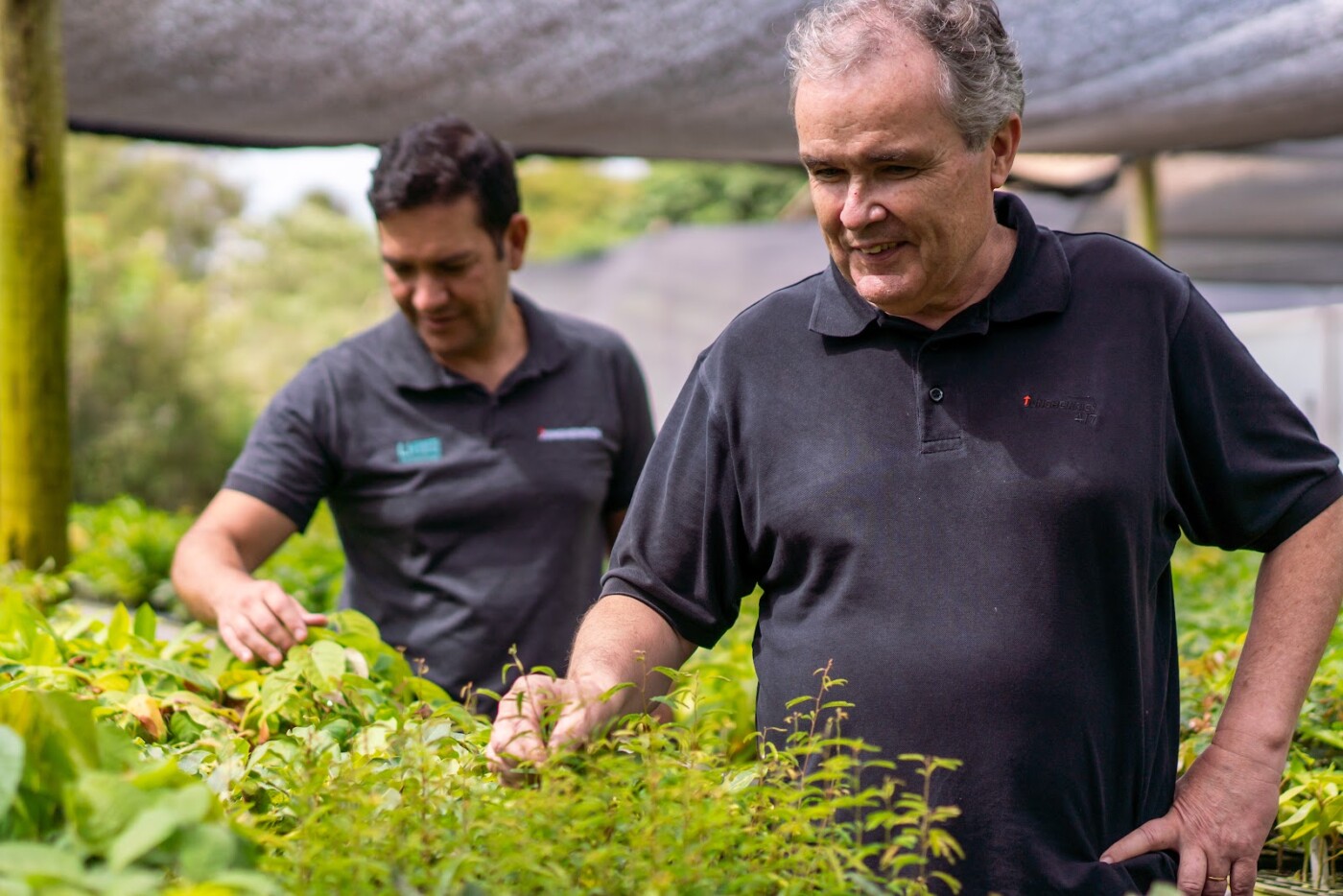 Foto: Vigold Georg (Vice-presidente) e Lauro Carvalho (Head de Treinamento LATAM e MKT Brasil) da Jungheinrich, em visita à área de cultivo das mudas do programa “O Meio Ambiente Ganha em Dobro” / Divulgação