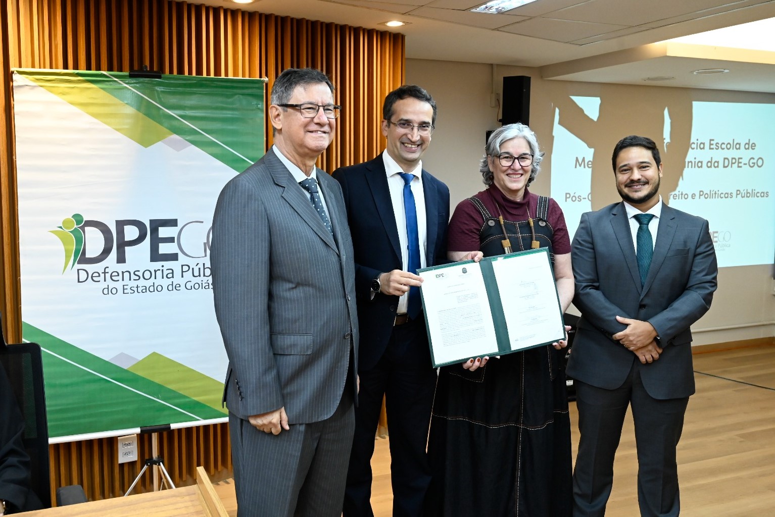 A solenidade foi marcada, também, pela celebração da conclusão do curso de pós-graduação em Direito e Políticas Públicas, promovida pela instituição de ensino em parceria com a Defensoria Pública, por meio da ESDP. Integrantes da DPE-GO que realizaram a formação receberam os certificados.