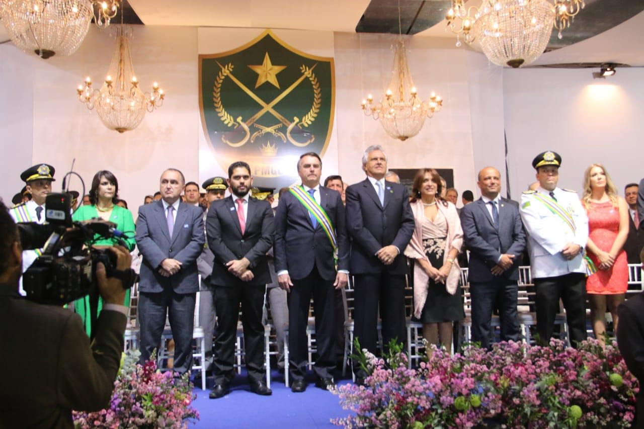 A solenidade reuniu ainda, comandantes de unidades especializadas; secretário de Segurança Pública, Rodney Miranda; deputados federais Major Vitor Hugo, Zacharias Calil, Glaustin da Fokus; deputados estaduais; entre outras autoridades dos poderes Executivo, Legislativo e Judiciário; familiares dos formandos; auxiliares de governo e população civil.