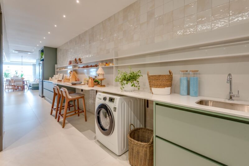 A área de serviço de uma residência é considerada por muitas pessoas o patinho feio do imóvel e preferem deixar o espaço escondido. Em muitos casos, inclusive, a área acumula função de dispensa ou de um local de despejo, onde se coloca tudo aquilo que não se enquadra nos demais ambientes. Contudo, essa desorganização nessa parte do apartamento também costuma incomodar.