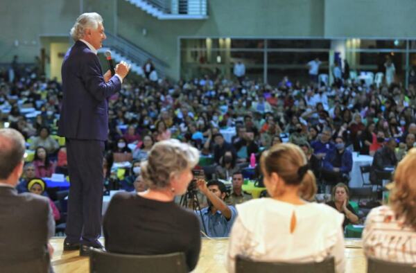 O governador Ronaldo Caiado anunciou, na noite desta sexta-feira (25/11), o pagamento de um bônus por resultados para 47.700 professores e servidores, entre efetivos e temporários, da rede estadual de educação. O benefício adicional equivale a 105% dos vencimentos e será pago entre dezembro deste ano e janeiro de 2023. A iniciativa representa investimento superior a R$200 milhões, pagos pelo Tesouro Estadual.