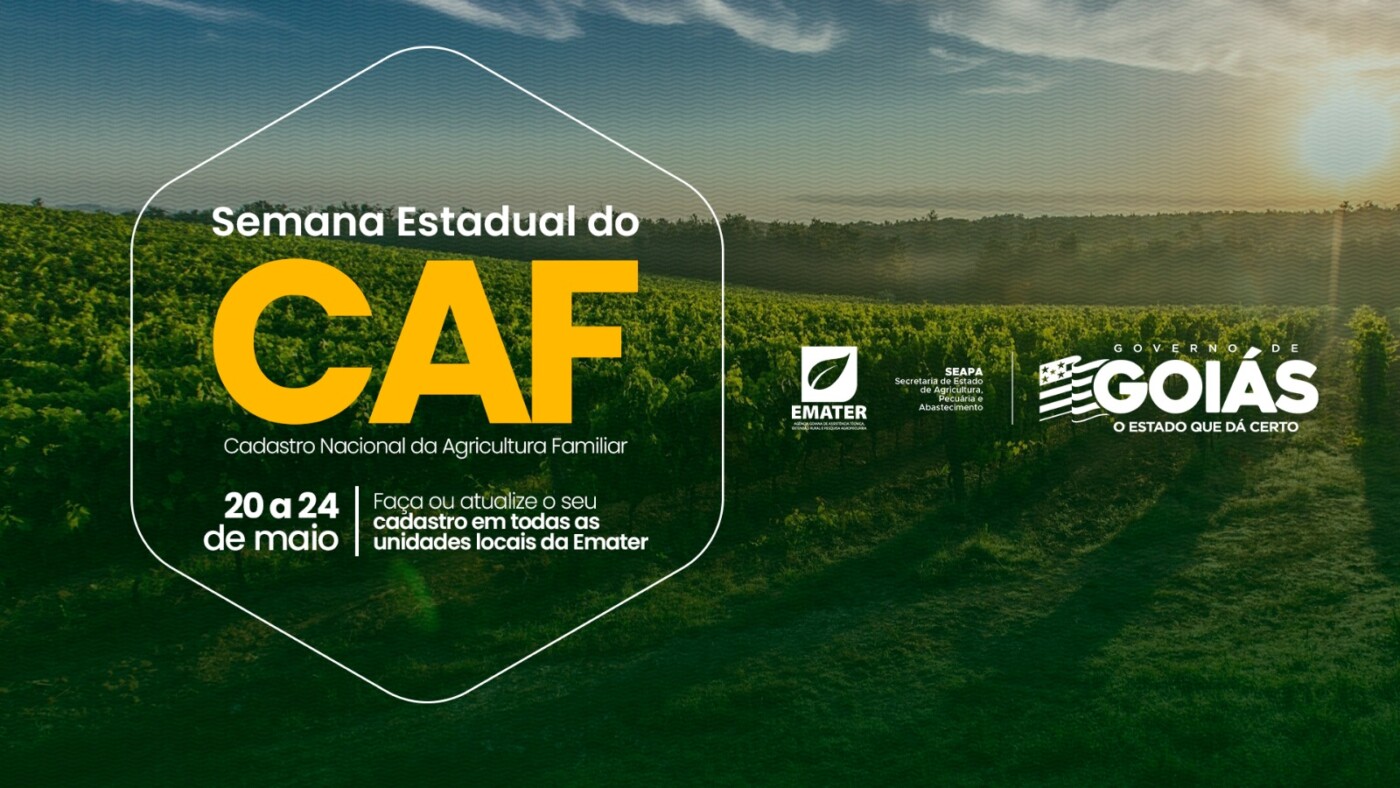 Para estimular os produtores a atualizarem o Cadastro Nacional da Agricultura Familiar (CAF), o Governo de Goiás, por meio da Agência Goiana de Assistência Técnica, Extensão Rural e Pesquisa Agropecuária (Emater Goiás), realizará de 20 a 24 de maio (20 a 24/5) a Semana Estadual do CAF. O documento dá aos agricultores e empreendedores familiares acesso às políticas públicas direcionadas ao segmento. A ação ocorrerá simultaneamente em todas as unidades locais de Goiás.