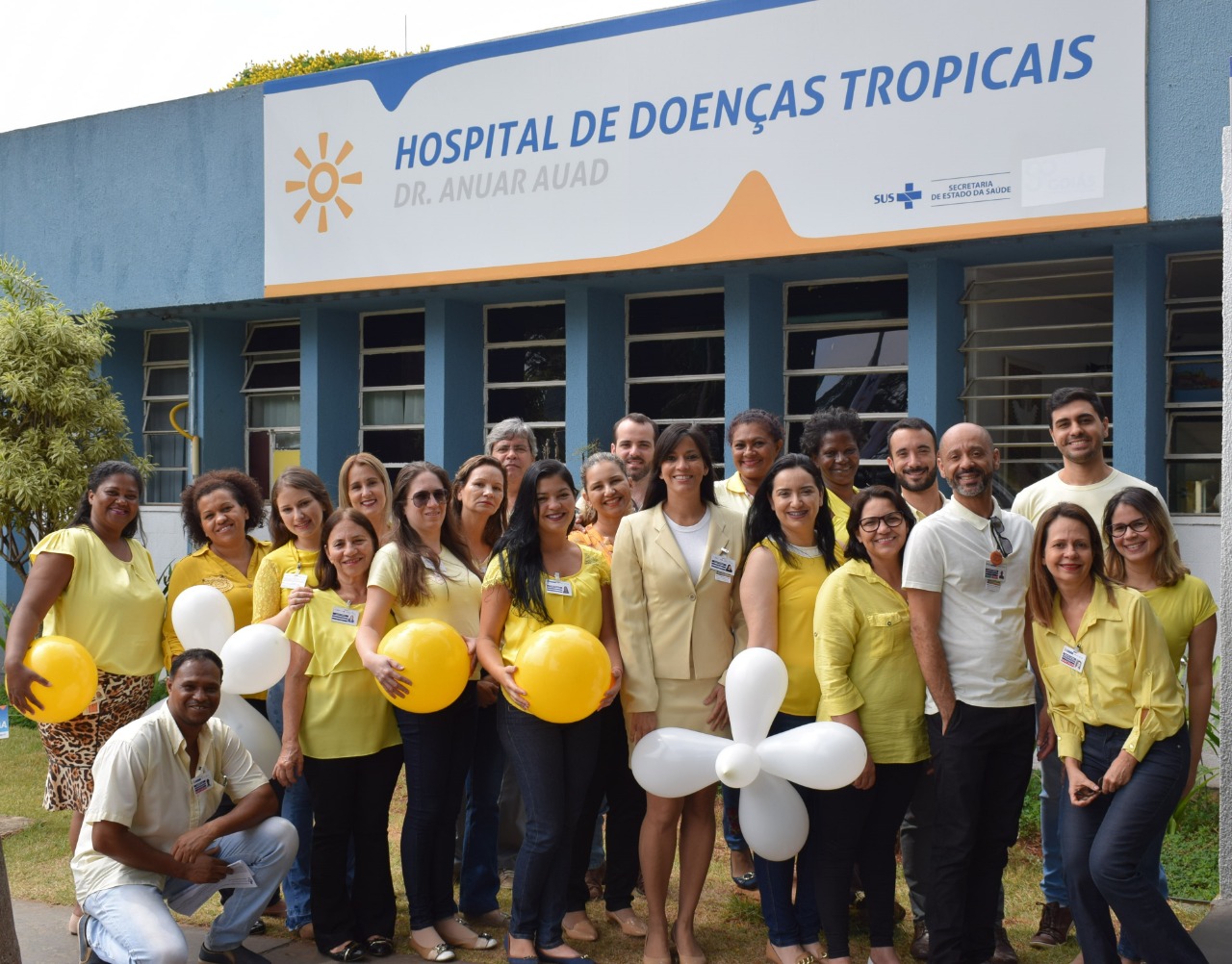 Sensibilizado com a campanha de conscientização sobre a prevenção do suicídio, Setembro Amarelo, o Hospital Estadual de Doenças Tropicais dr. Anuar Auad (HDT), da SES – Governo de Goiás, gerido pelo Instituto Sócrates Guanaes (ISG), aderiu à causa. No intuito de ajudar a alertar a população para a importância do tema, nesta terça-feira, dia 18 de setembro, os colaboradores da unidade se vestiram com peças de roupa amarela e houve distribuição de panfletos sobre o assunto a funcionários, pacientes e acompanhantes.