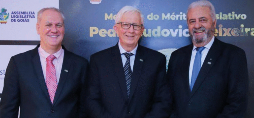 AGRACIADOS – Os presidentes da Sicredi, Celso Figueira (Brasil Cerrado), Carmo Inácio Spies (Planalto Central) e Zeir Ascari (Cerrado GO), foram homenageados com a Medalha do Mérito Legislativo Pedro Ludovico Teixeira, em sessão solene da Assembleia Legislativa de Goiás (Alego), dia 31 de outubro, celebrando o Ano Internacional das Cooperativas