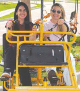 CURTINDO QUADRICICLO – Laleska Ramos e Carolina Assis, ambas coordenadoras de relacionamento com o cliente da FGR Incorporações, após realizar mais uma edição do “Jeito Jardins de Viver’, que marcou a entrega do Jardins Cannes, curtiram esse quadriciclo, que é usado pelos futuros moradores para percorrer as ruas do condomínio em Aparecida de Goiânia