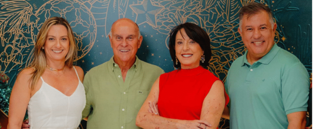 COMEMORANDO MEIO SÉCULO – O Hemolabor brindou meio século de dedicação à saúde com uma celebração à altura de sua trajetória, com uma grande festa no WTC Goiânia, reunindo médicos, parceiros e convidados em clima de emoção e reconhecimento. Na foto, os anfitriões Dr. Francisco Pereira Borges, Dr. Luís Henrique Ribeiro Gabriel, Dra. Simone Ribeiro Gabriel e Dr. Augusto Gabriel, que representam a excelência do Centro Integrado de Oncologia, Hematologia e Diagnóstico