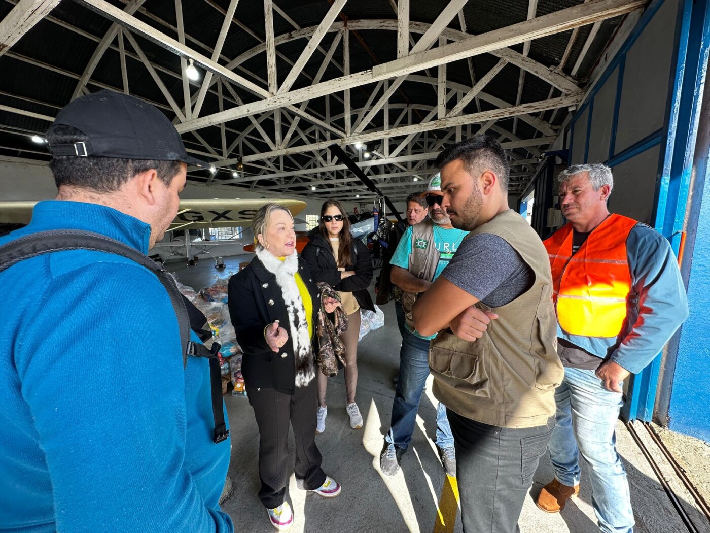 No Rio Grande do Sul, Magda Mofatto usa helicópteros para visitar 10 cidades por dia e levar medicamentos, alimentos e médicos para atingidos por enchentes