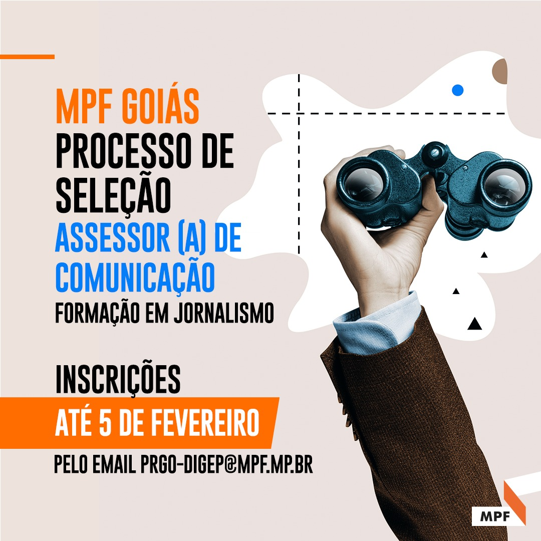 Os interessados devem enviar currículo para o e-mail: prgo-digep@mpf.mp.br no campo “assunto” deverá colocar o título “Processo de Seleção – Assessoria de Comunicação MPF/GO” até a data de 5/2/2024.