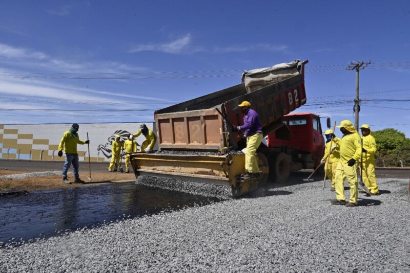 Obras de pavimentação em andamento em Goiás: