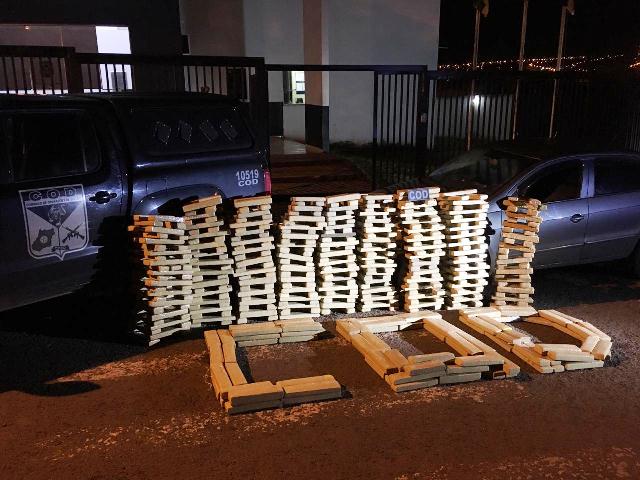 A Polícia Militar apreendeu na madrugada desta segunda-feira (07/10), em Jataí, 700 quilos de maconha. A ação foi realizada por policiais do Comando de Operações de Divisas (COD). Um veículo roubado também foi recuperado.