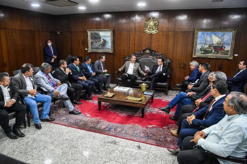 Nessa terça-feira (7) os presidentes da Associação Goiana de Municípios, Carlão da Fox, da Federação Goiana de Municípios, Aroldo Naves, e prefeitos goianos foram recebidos em audiência pelo presidente do Senado, senador Rodrigo Pacheco. Também participou o relator do projeto senador Fernando Bezerra.