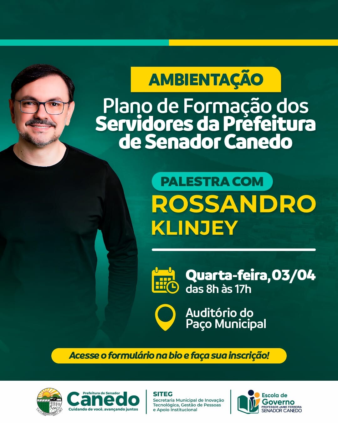 A participação do psicólogo e consultor em Educação, Rossandro Klinjey, visa trazer valiosos ensinamentos sobre desenvolvimento pessoal e profissional, aprimorando o funcionamento da gestão pública e garantindo um atendimento mais humanizado à população.
