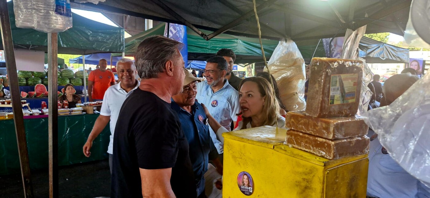 Ela foi recebida com carinho por feirantes e população, muitos recordando da candidata quando era criança e brincava pelas ruas do bairro.