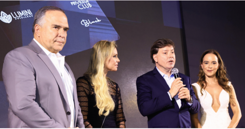 NOVO CEP – Na noite de segunda-feira, dia 22 de setembro, os dermatologistas Alessandro Alarcão e Geórgia Alarcão (à direita), receberam convidados para a inauguração da Lumini Privilège, nova unidade no Setor Marista. A ocasião reuniu quase 500 pessoas, como a jornalista ,Mônica Salgado, autoridades, celebridades e formadores de opinião. No registro, o prefeito de Goiânia, Sandro Mabel, a primeira-dama do município, Karolyna Freitas e os anfitriões
