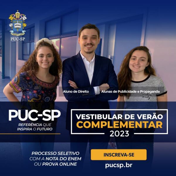 Inscrições: https://www.nucvest.com.br/pucsp/vestibular/2023/complementar-enem-verao.