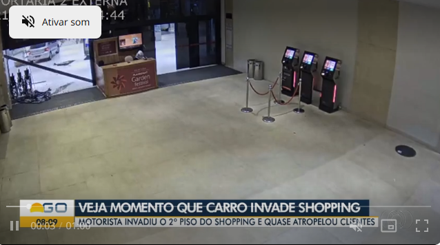 O caso aconteceu na noite desta segunda-feira (21). Nas imagens, é possível ver quando o carro entrou no shopping, quebrando uma porta de vidro, e começou a andar pelos corredores.