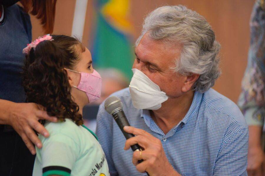 O governador Ronaldo Caiado, entregou, nesta quinta-feira (30/09), 532 cartões do Programa Mães de Goiás, em São Miguel do Araguaia. Em seguida fez o descerramento da placa de inauguração da reforma e ampliação do Colégio Estadual São Miguel do Araguaia e distribuiu 493 Chromebooks a alunos da 3ª série do Ensino Médio. No município, o ele lembrou o repasse recorde para o setor que atingiu, nesta semana, índice histórico. “Nós já investimos R$ 2,3 bilhões na Educação. Isso não é discurso, são ações diretas que mudam a vida de milhares de crianças e jovens”, afirmou.