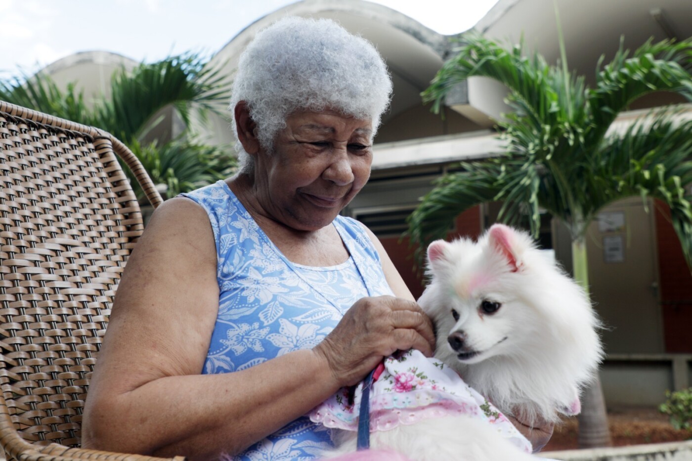 “É muito bom poder abraçar e beijar esse serzinho, ele me passa tanto amor”, afirmou a aposentada Maria Célia de Almeida, de 75 anos, que ficou com os olhos marejados ao pegar a cadela Eva, da raça Spitz Alemão. “Vem com a vovó!” cochichou dona Maria Gentil Almeida Santos, de 75 anos, entre um afago e outro. Responsável pela iniciativa, a psicóloga Márcia Stoco disse que o contato com os animais “provoca nos idosos atitudes mais positivas com relação à depressão, ao estresse, à solidão e à ansiedade”.