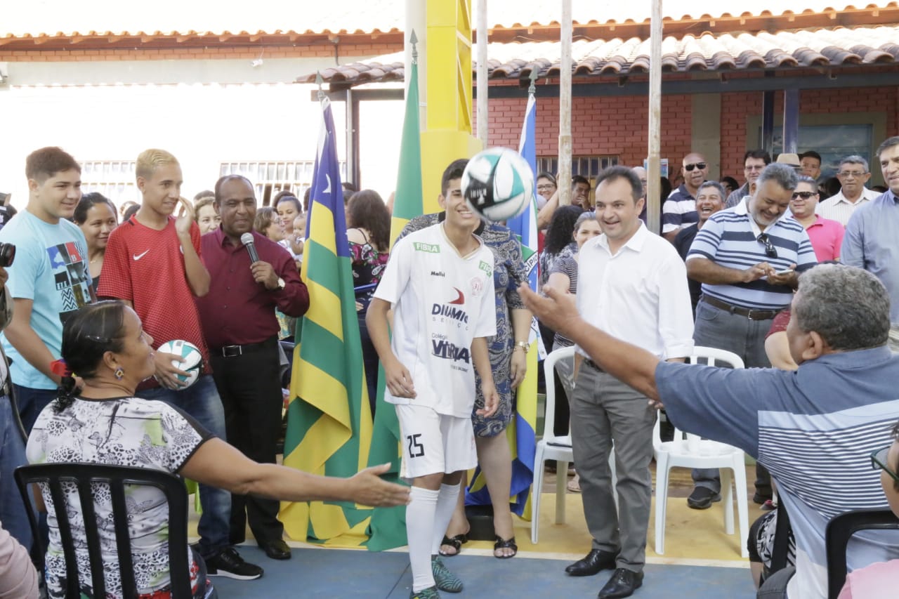 Além da nova quadra, Mossoró entregou kits para as merendeiras, com avental, touca e sapatos, utensílios novos para cozinha/cantina e uniformes para os alunos valparaisenses.